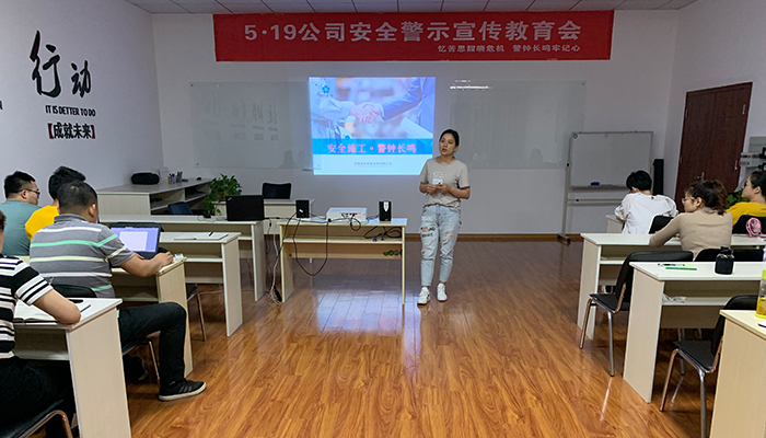 為使全體員工在工作中了解現(xiàn)場所涉及到的一些危險因素,掌握怎么樣進行預(yù)防和保護自身安全,使作業(yè)過程中在保護自己的同時能夠保護別人。公司辦公室人員及各項目現(xiàn)場同步開展了《5·19安全警示宣傳教育會》,強化安全意識,遵守安全操作規(guī)程和勞動紀(jì)律,創(chuàng)造良好的施工環(huán)境與秩序。